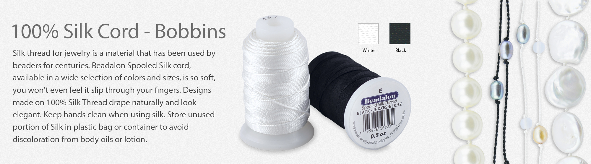 / 100% Silk Bead Cord – Bobbins – Black