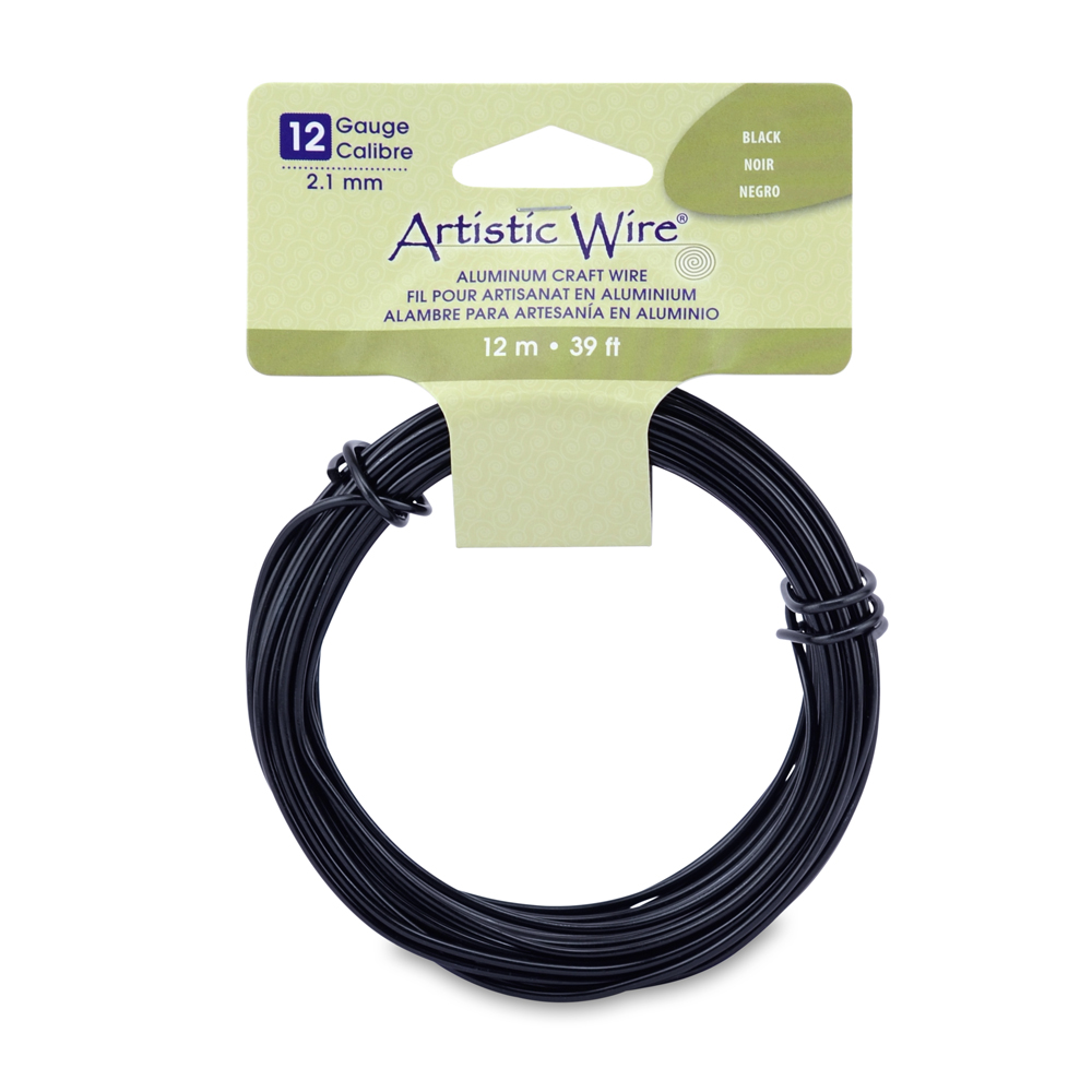 Artistic Wire, Aluminum Craft Wire, 12 Gauge / 2.1 mm, Round, Black, 39.3 ft / 12 mAvailability: In stock
