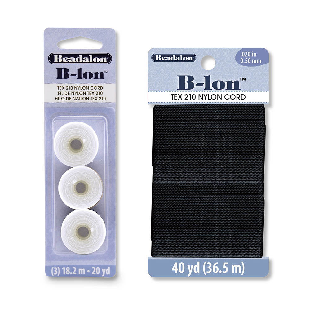 B-Lon is a Tex210 nylon thread with a diameter of .5mm (.02 in) specially formulated for a variety of beading and jewelry making applications. It works great for macramé designs with and without beads. Use it for Kumihimo, bead weaving and even bead stringing.