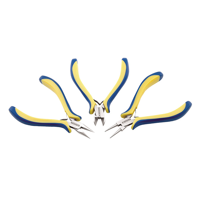 Designer Series Ergo Tool Kit, Yellow & Blue Vinyl Free Grips, Chain Nose Pliers, Round Nose Pliers, Semi-Flush Cutter, Stainless Steel Box Joint, 5.25 in / 13.3 cm, 3 pc