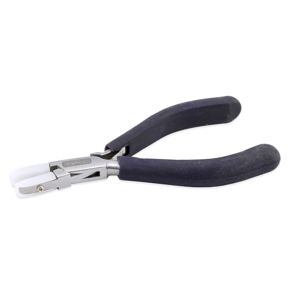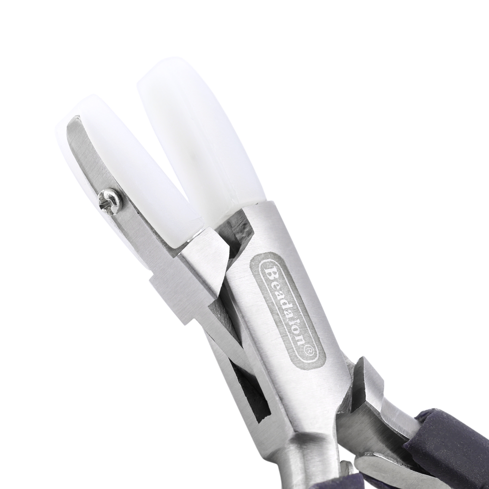 Designer Series Nylon Jaw Pliers, Flat Nose, Dark Blue Vinyl-Free Grips, Stainless Steel, Tip Size 0.32 in x 0.79 in / 8.1 mm x 20.1 mm, 5.25 in / 13.3 cm