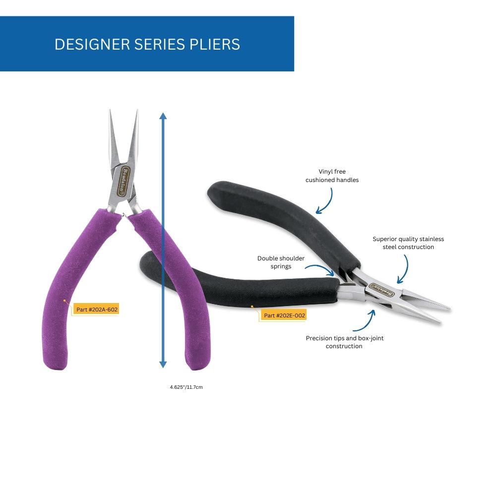 Designer Series Pliers Kit, Black Vinyl-Free Grips, Chain Nose, Bent Chain Nose, Round Nose, Semi-Flush Cutter, 4.75 in / 12 cm each, 4 pc with Zip Pouch