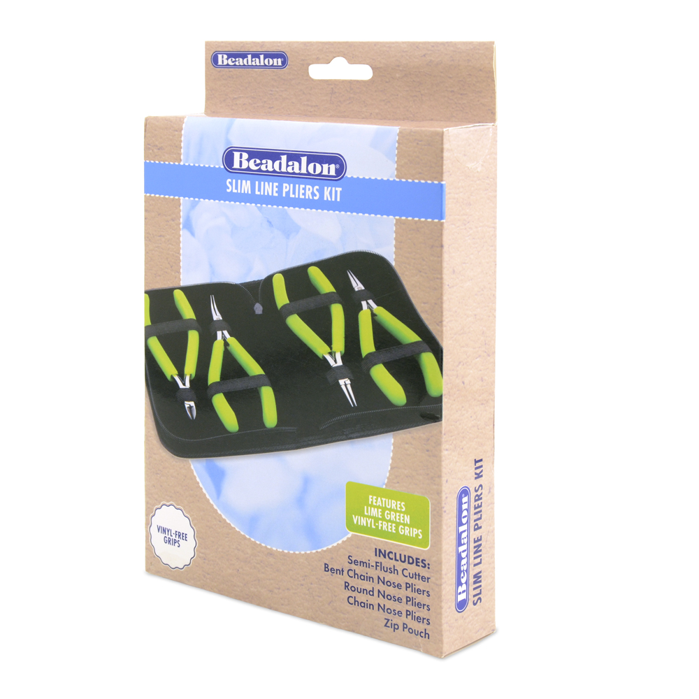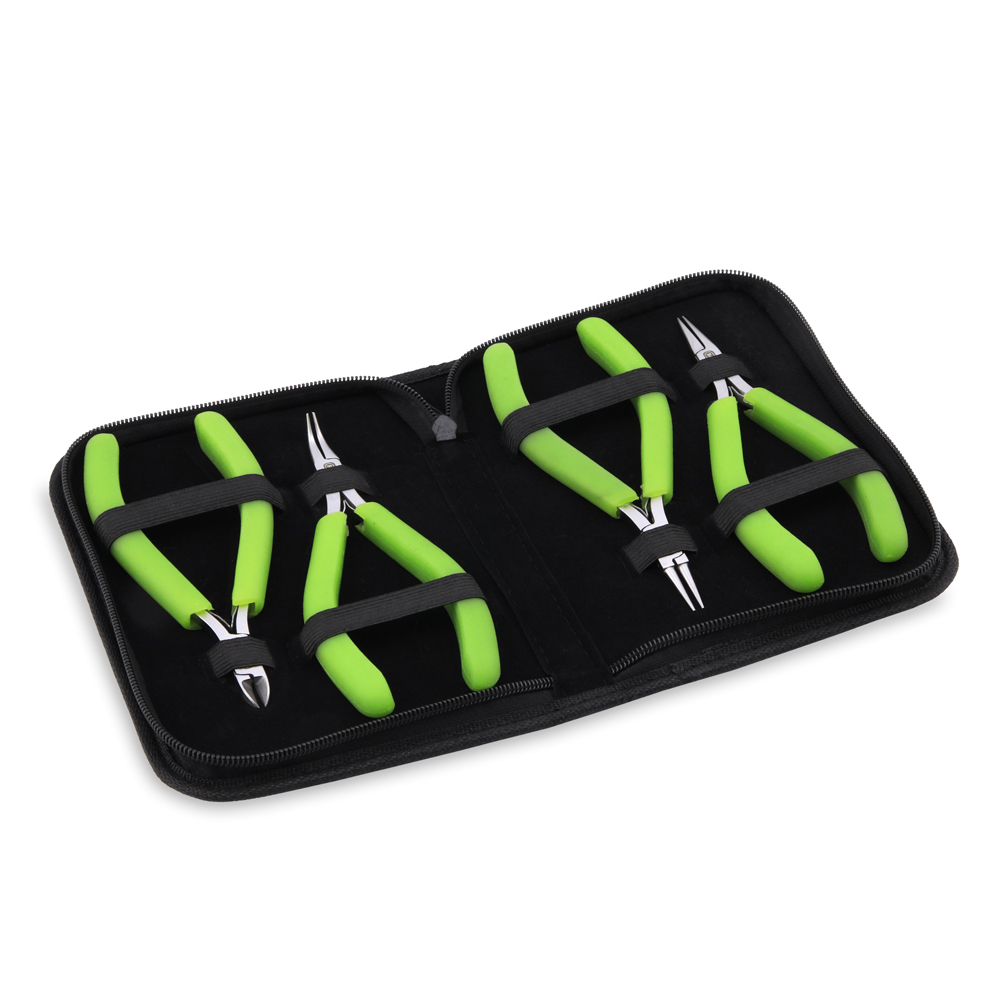Designer Series Slim Pliers Kit, Lime Green Vinyl-Free Grips, Stainless Steel, Chain Nose, Bent Chain Nose, Round Nose, Semi-Flush Cutter, 5.75 in / 14.6 cm, 4 pc w/ Zip Pouch
