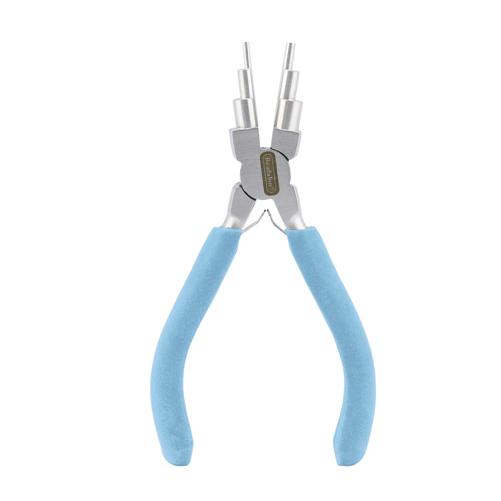 Designer Series Stepped Bail-Making Pliers, Pacific Blue Vinyl-Free Grips, Stainless, Dbl Leaf Sprg, 6 Loop 9,8,6,5,3,2 mm / 0.35,0.31,0.23,0.20,0.12,0.08 in, 6.25 in/15.9 cm
