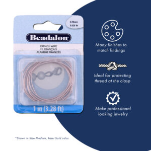 French Wire, also known as ‘Gimp’ and ‘Bullion’ is used to cover and protect bead cord from friction and breakage at the clasp area. By covering the ends of the bead cord, Bullion Wire fortifies the silk beading cord and also gives the design a professional finish.