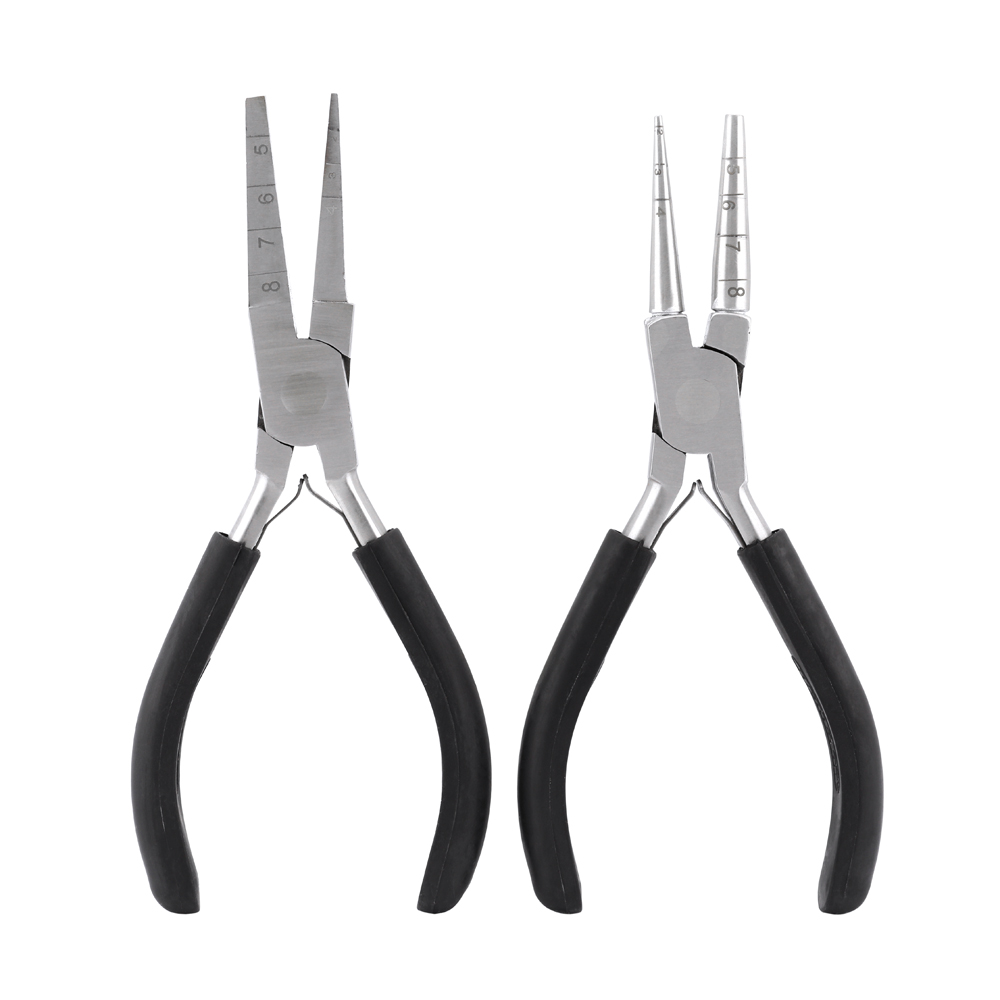 Looping Pliers Round & Square, Marked 2 mm, 3 mm, 4 mm, 5 mm, 6 mm, 7 mm, 8 mm / .079 in, .118 in, .157 in, .197 in, .236 in, .276 in, .315 in – 6.3 in / 16.1 cm, 2 pc