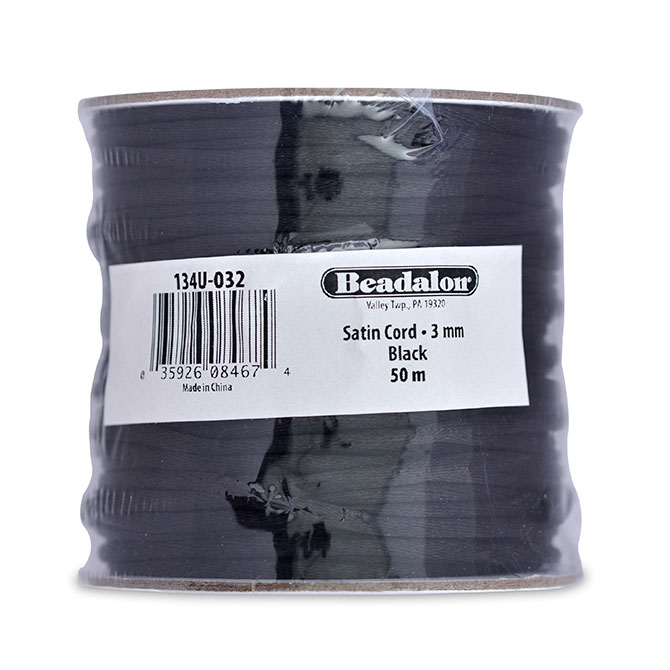 Satin Cord, 3 mm / 0.12 in, Black, 50 m / 164 ft