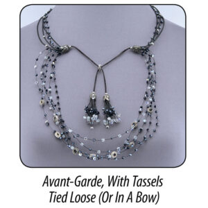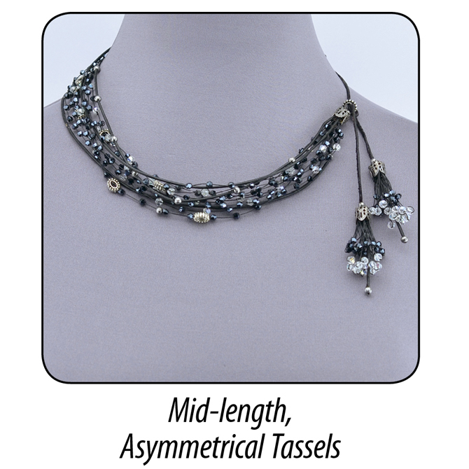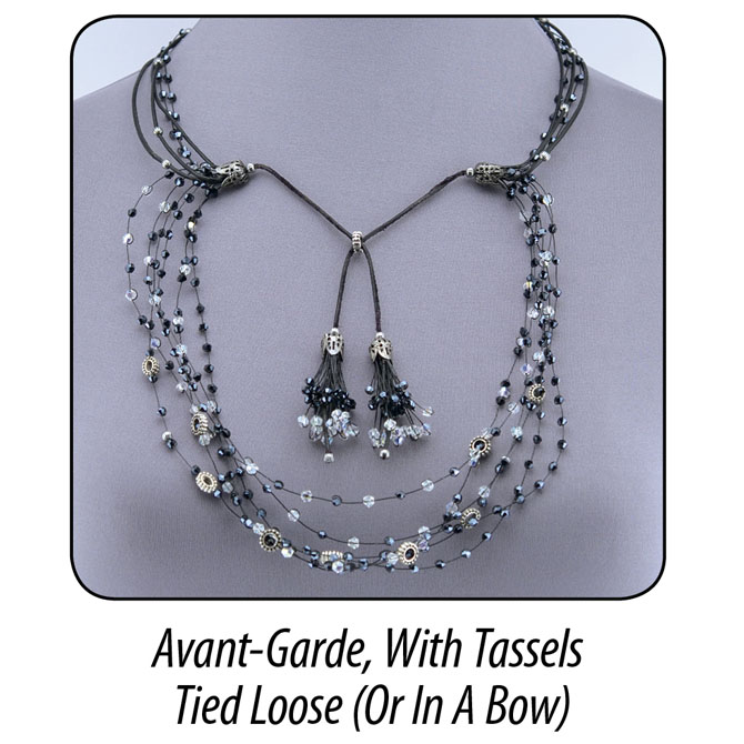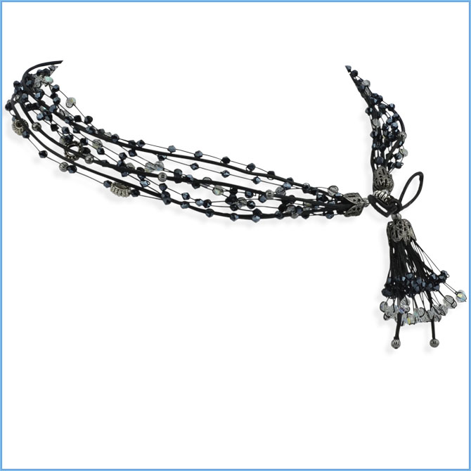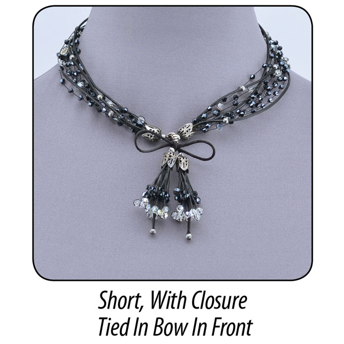LEATHER AND LACE NECKLACE | One Necklace For Many Occasions Materials Used For Leather And Lace: Bead Stringing Wire – Beadalon 19 Strand, Black (2) (JW15B-0) Beadalon Greek Leather, Black (1) (JLEGK1.5BLK-05M) Artistic Wire Black Color 28 Gauge (1) (AW1-28-02-1/4#) Beadalon Solid Ring Set (Distributed from Beadalon for JTV) (1) (JSKIT0188) Swarovski Crystal Hematite (244) and Clear (43) Beads (JW15B-0) Crimp Covers Corrugated Hematite (23) Crimp Beads (16-20) End Caps (4) Beadalon Beadfix Adhesive (1) (JA-BEADFIX) Tools Or Equipment Used For Leather And Lace: Knotty-Do-It-All Full Size (JTV) (1) (JKLW6216) Ruler, Stainless Steel (1) Bead Stopper, Large (2) (216A-106) Tacky Bead Mat (1) (218H-200)( Designer Flush Cutter (1) (202E-001) Round Nose Pliers (1) (201E-003) Crimp Tool Pliers (1) (JTCRIMP4) Bent Nose Pliers (1) (201E-005) Nylon Jaw Flat Nose Pliers (1) (JTNJ3) Replacement Nylon Jaws (1) (JTNJ3REP)
