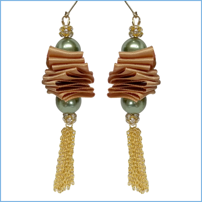 Use Wire Guardians in a unique way to attach chain tassel dangles to Earwires! 325A-002, Wire Guardian, .022 in (0.56 mm) I.D., Gold Color, 20 pc 340A-001, Chain, 2.3 mm (.091 in) Small Cable, Gold Color, 2 m (6.56 ft) JW14G-15FT, 19 Strand Bead Stringing Wire, .015 in (0.38 mm), Gold Color, 15 ft (4.5 m) Resource Center | Design Workshop | Ear Wires | Chain & Quick Links | Tips and Techniques